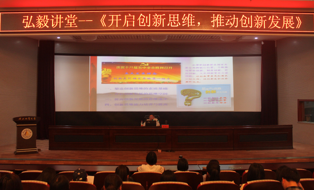 讲座中,陈春生教授围绕“塑造创新思维的素质基础、开启创新发展的思维空间、提高创新发展的思维速率、创新思维能力培养与提高”四个方面深入解析了创新能力的培养。他提出:创新是一个不断探索,不断尝试,不断打破旧观念的过程,创新不是走前人的路,而是在前人的基础上走出自己的路。进而提出:创新需要的不仅是智商,还有情商、胆商和韧商,更需要创新者敢于突破、勇于坚持。在陈教授精彩的演讲中同学们深刻体会了“什么是创新”、“为什么要创新”、“要创新该怎么做”这三个问题的深刻内涵,完美的呈现了讲座的主题,现场气氛热烈、掌声不断,陈春生教授的讲座语言风趣幽默,事例生动鲜活,理论深入浅出给同学们留下了深刻的印象。