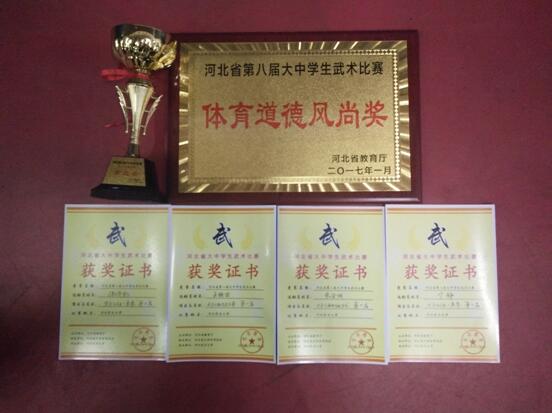 2017年1月8日-12日,由河北省教育厅主办,河北省大学生体育协会承办的河北省第八届大中学生武术比赛在河北农业大学举行,来自华北电力大学、河北大学、河北师范大学、河北经贸大学、燕山大学、华北理工大学等43所学校,528名运动员参赛,bat365官网武术队男、女12名运动员在陈伟英、赵海军、吴振超老师的带领下参加了本次比赛。