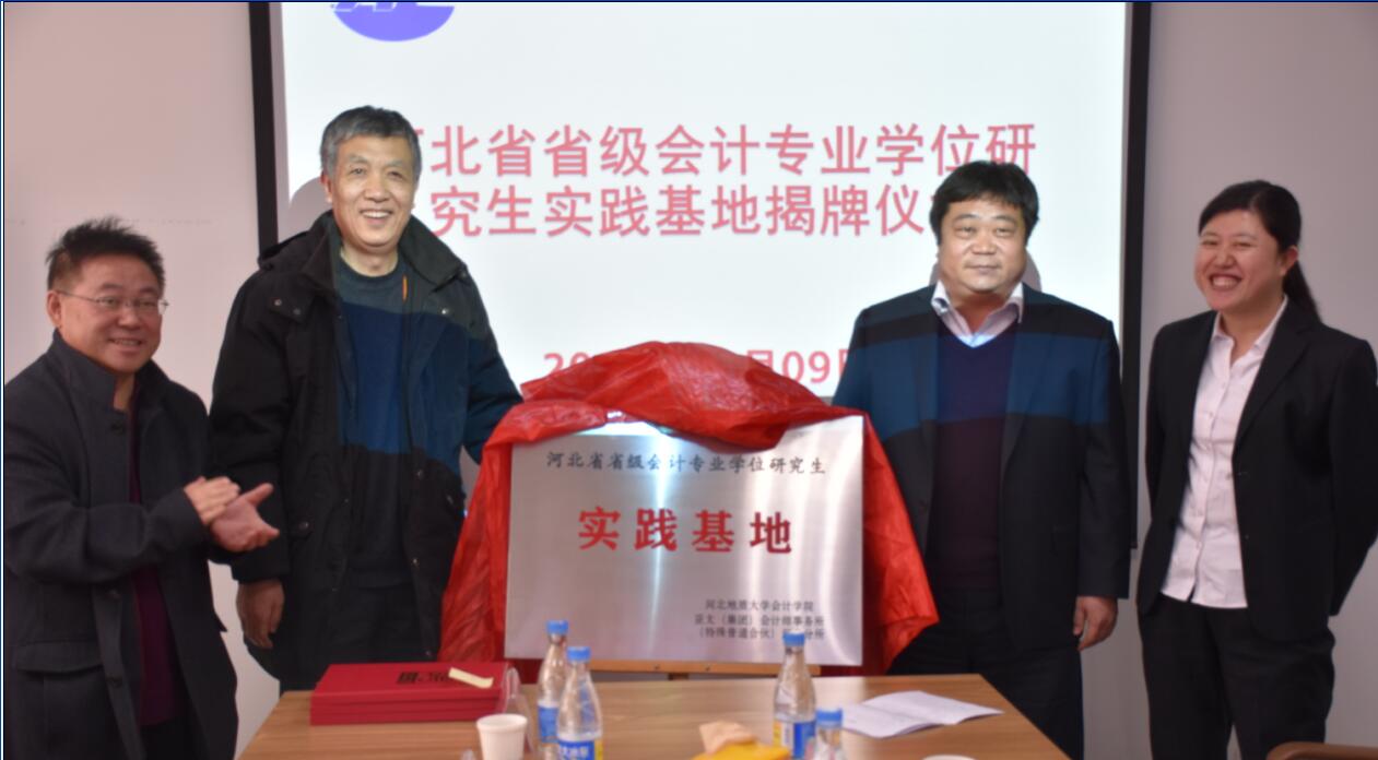 2017年1月9日下午,bat365官网在亚太会计师事务所河北分所举行河北省省级会计专业学位研究生实践基地揭牌及校外导师聘任仪式。副校长毛磊,河北省注册会计师协会秘书长王拥军,河北省注册会计师协会副秘书长吴士如,会计学院领导班子,以及部分师生参加了仪式。仪式由亚太会计师事务所合伙人李万军(原河北省注册会计师协会担任副秘书长)主持。