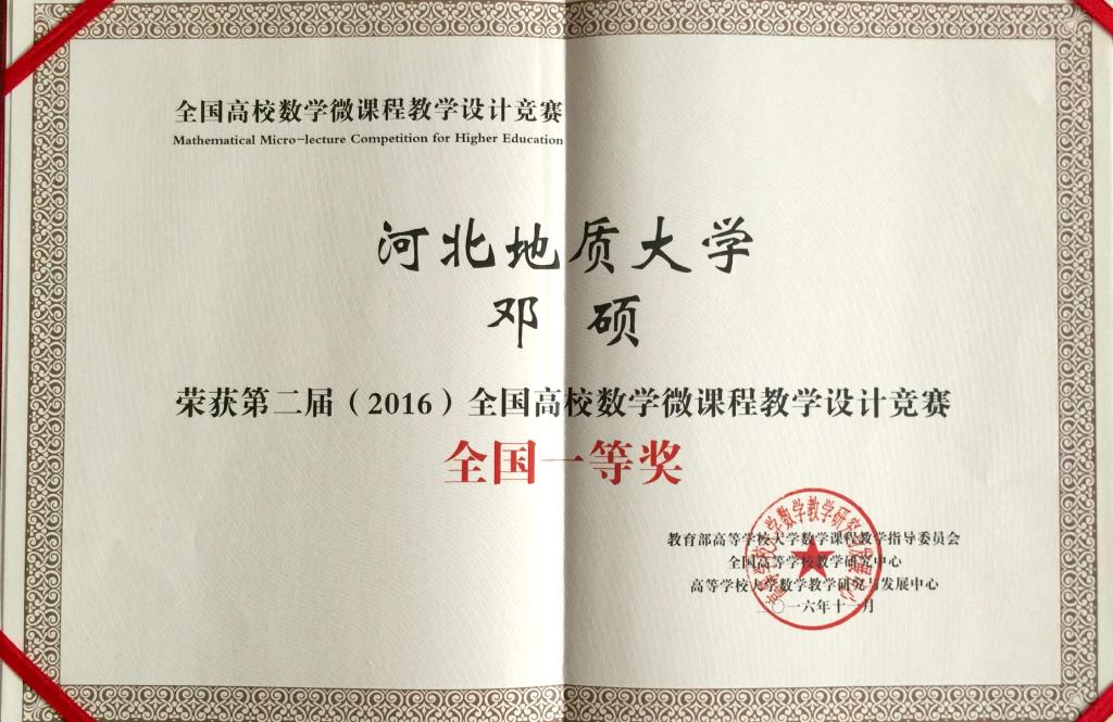 近日,第二届(2016)全国高校数学微课程教学设计竞赛获奖名单揭晓。bat365官网数理学院教师邓硕荣获国家一等奖。