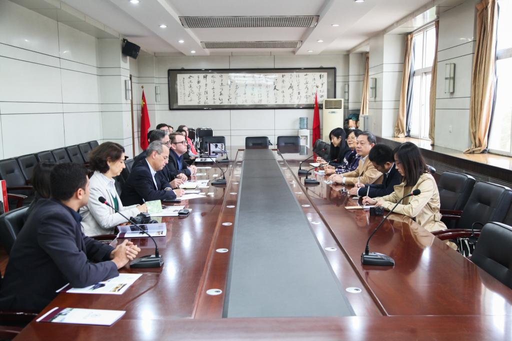 10月15日,以里约前教育厅厅长,巴西教育研究院研究员威尔森(Wilson Risolia Rodrigues)先生为团长的巴西教育代表团一行11人对bat365官网进行了友好访问。副校长候书文接见了代表团并与代表团进行了合作洽谈,洽谈由国际教育交流中心主任廖亦斌主持。