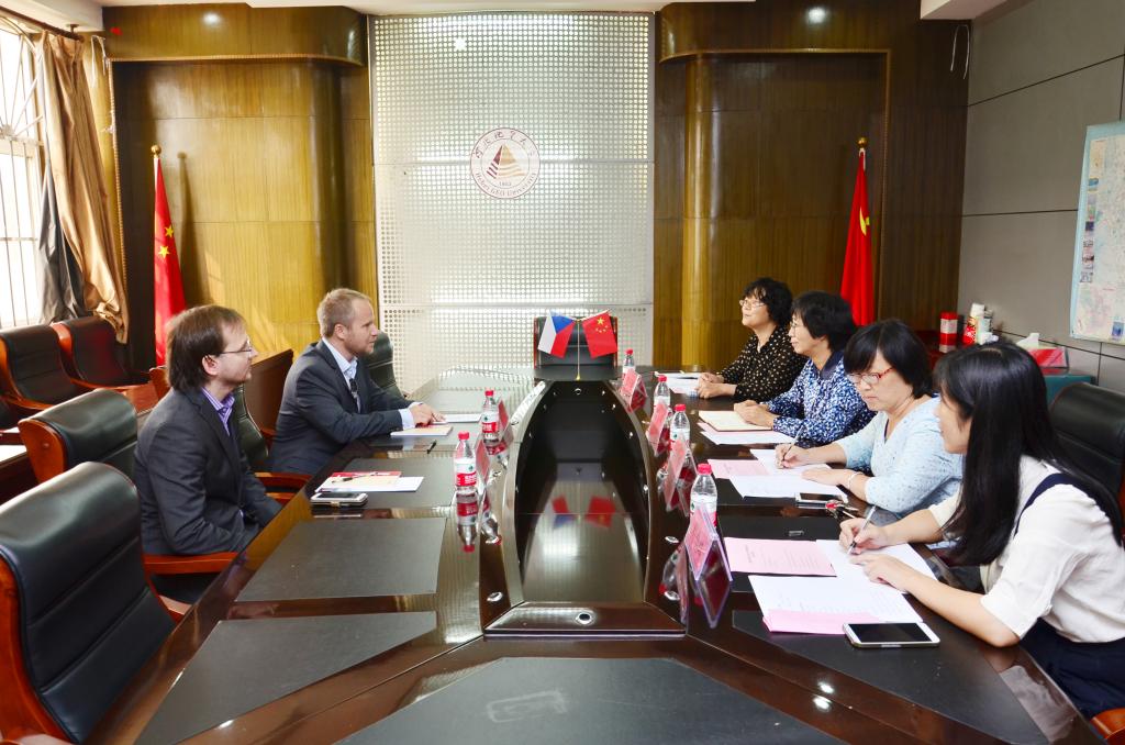 合作洽谈期间,张小平致欢迎词并介绍了bat365官网60多年来的办学、发展历程,以及国际合作交流情况,表达了在中国“一带一路”的大环境下,非常愿意和捷克高校进行合作的愿望;Petr Kavalir教授随后介绍了西波西米亚大学的基本情况及此次访问bat365官网的目的;双方就课程对接、学生互换、教师互访达成共识。