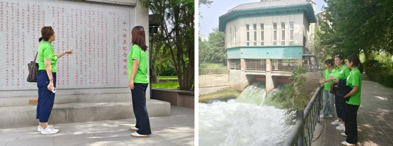 在十八团渠纪念碑前,实践团了解到老一辈建设者在戈壁荒漠中开凿水渠的奋斗史。水渠中的一砖一瓦,全是王震将军带领十八团士兵用镢头等工具人工挖掘而成。这种开拓精神与巴音郭楞地质大队的地质 “三光荣” 精神交相辉映,在西部建设中结出了丰硕成果。