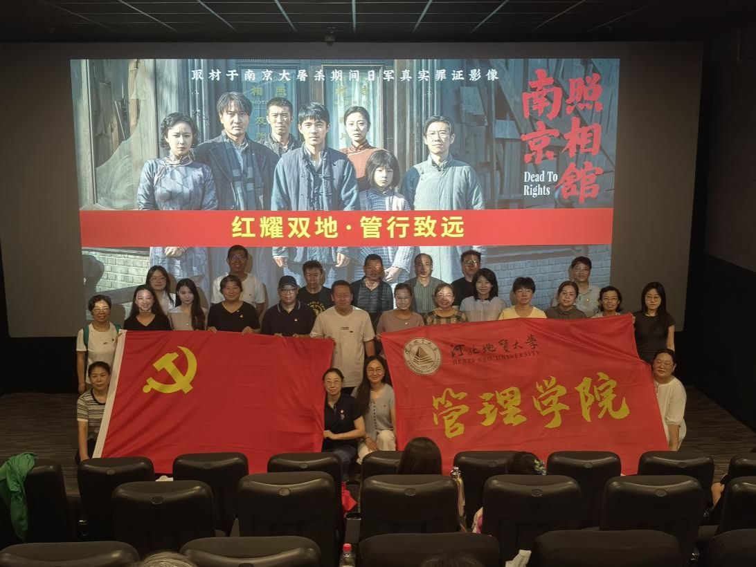 2025年8月,学校管理学院积极开展纪念中国人民抗日战争暨世界反法西斯战争胜利80周年教育活动,以“红耀双地”精神为指引,深入“管行致远”党建育人品牌。8月20日,学院党委组织师生党员观看抗战电影《南京照相馆》。这部电影取材于1937年南京大屠杀期间日军真实罪证影像。电影以普通南京市民视角审视这样一次人间浩劫,也是普通市民在抗日战争至暗时刻的觉醒与抗争。