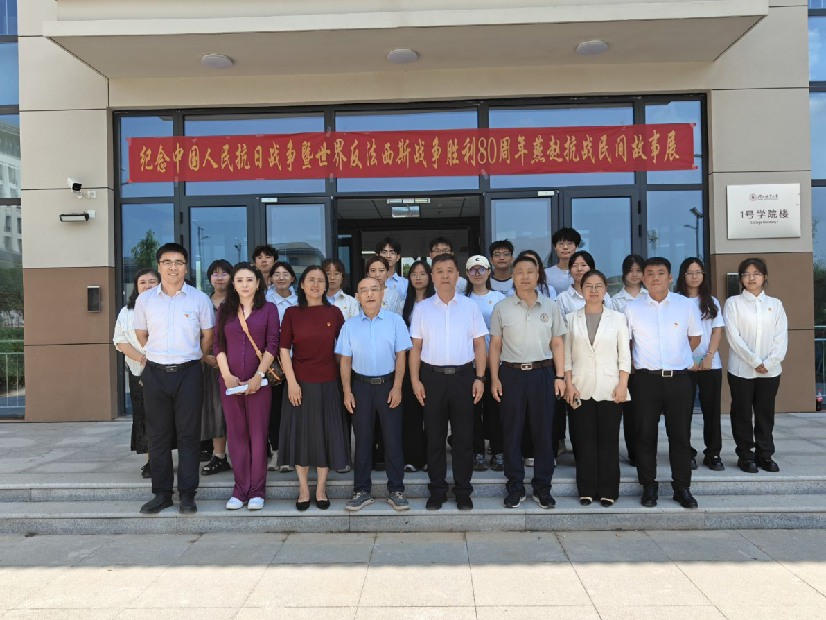 为纪念中国人民抗日战争暨世界反法西斯战争胜利80周年,9月3日上午,燕赵抗战民间故事展在1号学院楼A座1楼大厅成功举办。活动由语言文化学院主办,是学院坚持党建引领,文化赋能,充分发挥“一站式”学生社区的优势,以党建带动团建的重要举措,旨在深入挖掘燕赵大地红色文化资源,传承抗战精神,在青年学子心中厚植爱国情怀。学校党委副书记都沁军、王彦东,团委书记马沁芳、学生工作处处长王祥、语言文化学院领导和学院师生代表作为首批嘉宾观展。