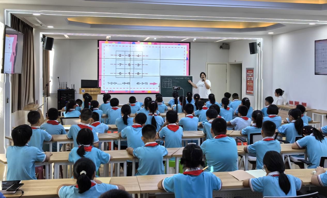 张湉同学以《神奇的“走马灯数”》为题,从传统“走马灯”文化引入,生动讲解了142857这一数字的循环特性及其实际应用;周赫琪同学则通过《三阶幻方》课程,以洛书九宫图为起点,引导学生探索幻方的规律,让抽象的数学知识变得趣味盎然。