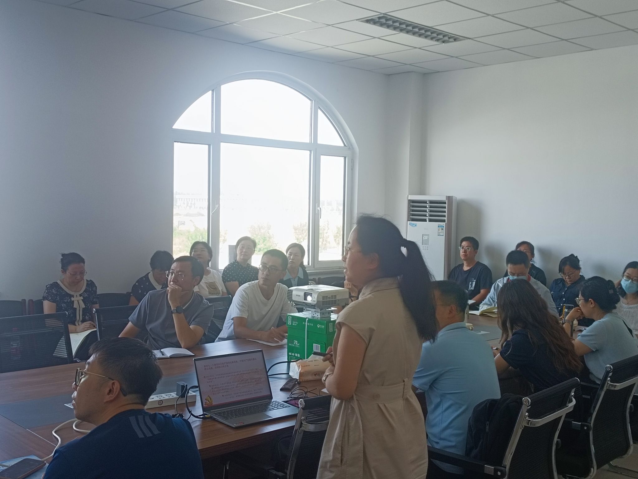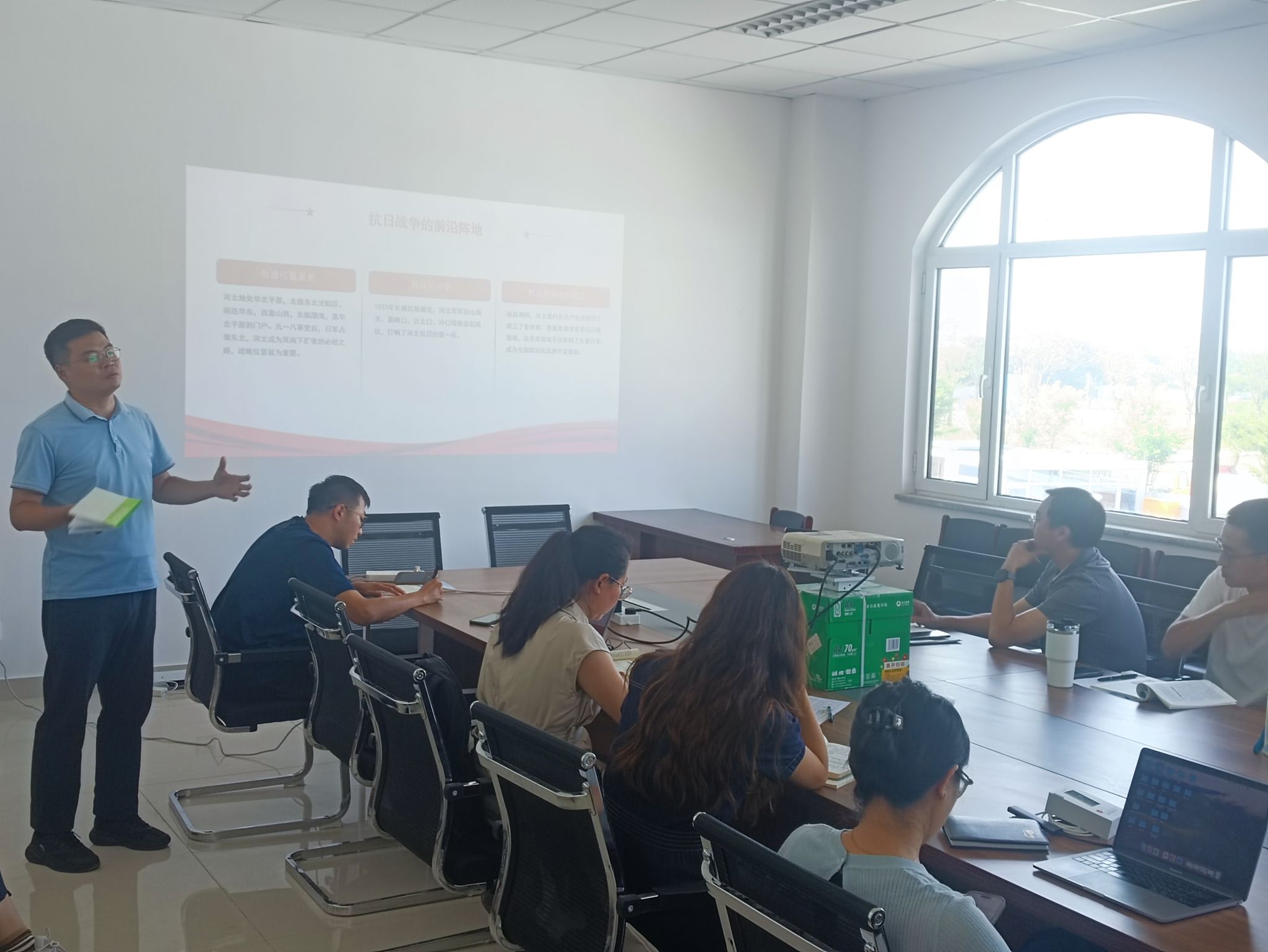 备课会上,徐光惠老师以《全民族抗战是中国人民抗日战争胜利的重要法宝》为题,从抗日民族统一战线的形成、全民族抗战胜利的思想指引、全民族抗战的磅礴伟力、中国抗战在世界反法西斯战争格局中的深远影响四个维度,系统阐述了全民族抗战在抗日战争胜利中的决定性作用。马恩斯老师以《抗日战争中的河北:烽火燕赵铸辉煌》为主题,从家谱文化视角切入,深入剖析了抗日战争时期河北地区的历史贡献,详细介绍了抗战期间河北人民的英勇事迹,深刻阐释了伟大抗战精神的时代内涵。两位教师报告结束后,与会教师在教材处理、教学资源开发、学时安排、学情分析等方面进行交流,针对教学实践中存在的共性问题进行了专项研究。