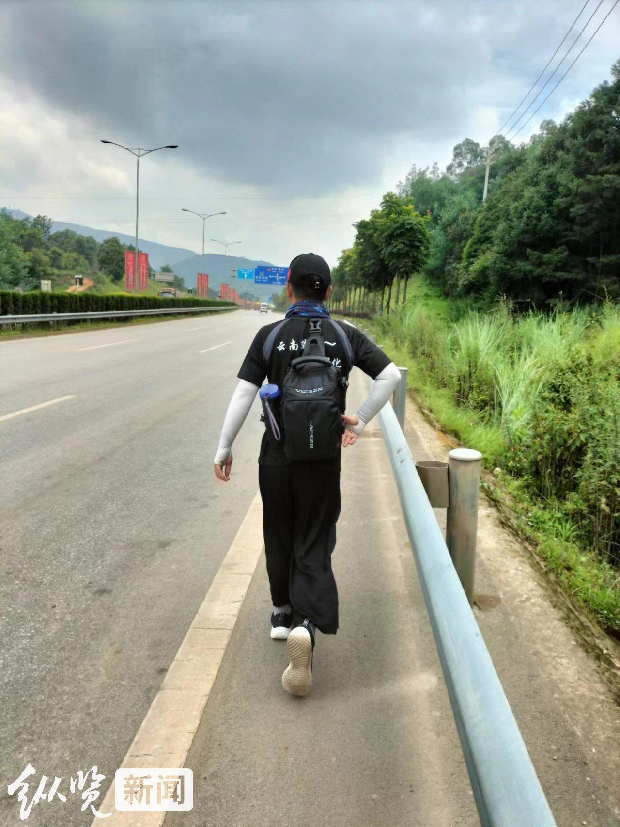 徒步4000公里,其中辛苦可想而知,但凌子非常坚定。曾有人建议他走不动了打一段车,被凌子坚决地拒绝了,“我不会少走一公里路。”在从曲靖市区到白水镇的途中,因为需要临时调整路线,朋友开车拉他到了富源县城,比原计划少走了8公里,第二天凌子特意多走了15公里,补上前一天少走的路。“我一定会一步一步走到宣化!”