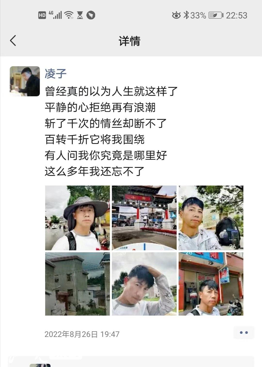 不仅如此,还有不少校友专程赶过去陪凌子走一程。从楚雄出发开始,就有校友自发前来送行,后面又不断有素昧平生的校友从各地赶来“陪走”。这些“陪走”的校友中有84级的师兄,也有10级的小师弟,更有一位93级的师弟专程从广州坐飞机赶到贵州陪凌子走了四天。
