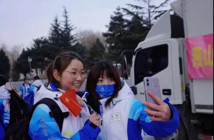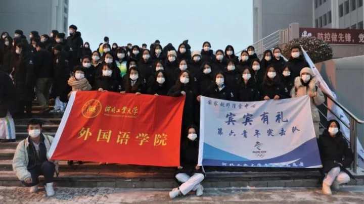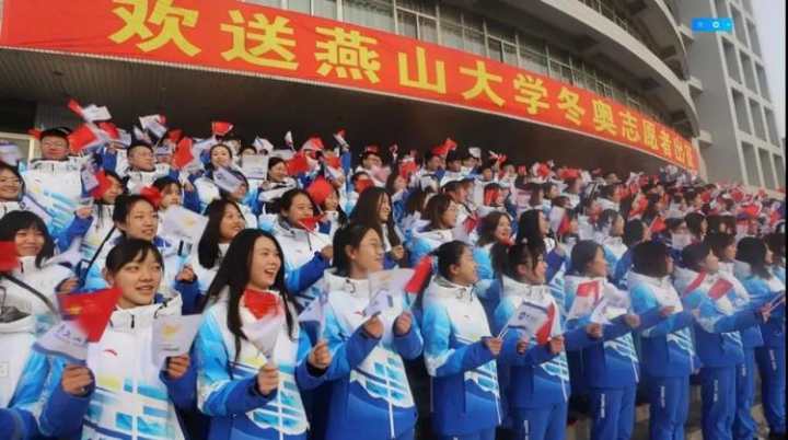 冬奥会志愿者出征前在校内合影留念。图自燕山大学官方微信