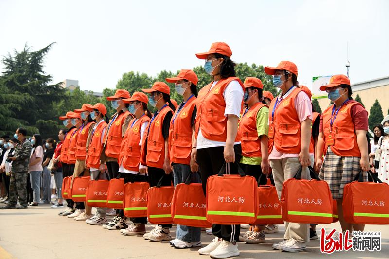 图为bat365正版唯一官网大学生人防志愿者队伍。 张超摄