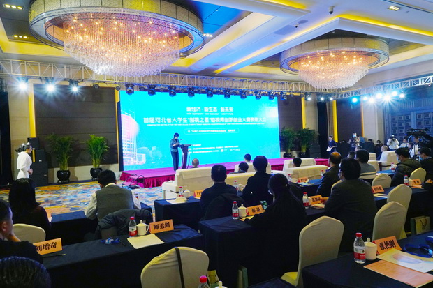 为表彰先进,搭建更为广泛的产教融合平台,激励广大师生参与到创新创业实践活动中去,赛事组委会于11月26日在河北宾馆(石家庄)举办了首届河北省大学生“创视之星”短视频创新创业大赛颁奖典礼暨“未来汇·河北省大学生创新创业实践基地”授牌仪式。本次会议采用线上和线下相结合的方式。线上有河北省各高校参赛团队成员、指导教师及关注短视频领域的人员共约13000人通过小鹅通平台参会。