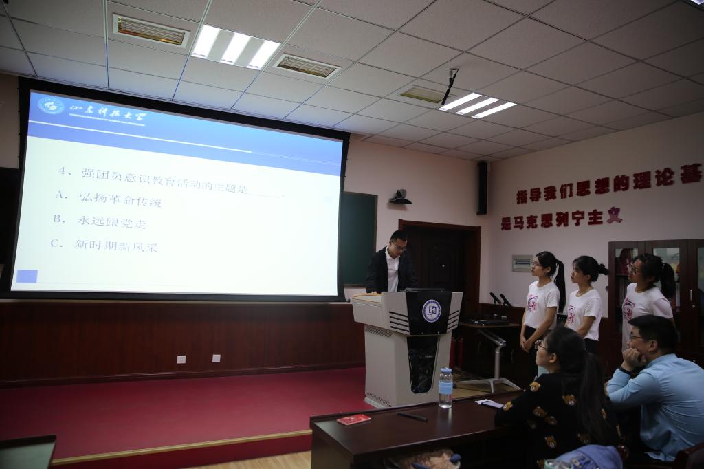 本次团日活动共分为三个篇章:第一篇章“感悟历史”。庄严的国歌拉开了活动的序幕。邴建伟为团日活动致辞,他回顾了“五四运动”百年历史,强调了学校第三次党代会提出的人才培养要求,肯定了本次主题团日活动的重要意义。就办好本次主题团日活动提出三点希望:一是初心不改、青春向党,号召同学们以实际行动紧密围绕在以习近平同志为核心的党中央周围;二是认真参与、提高认识,激发同学们对马克思主义理论的学习热情;三是以德立身、以德立学,要不畏艰苦、立德修身,追求真理、立德治学。研究生观看了爱国主义影片《建党伟业》片段,重温了炽热的历史,感悟了浓烈的爱国情。第二篇章“把握现在”。通过知识竞答的形式对五四运动知识进行巩固学习,答题的活跃氛围将现场气氛推向高潮; 2017、2018级研究生分别进行了《筑梦青春一百年,奋进建功新时代》的诗歌朗诵和《明天会更好》的大合唱,每位同学都饱含激情,表达对祖国的感恩与祝福。第三篇章“开拓未来”。学生代表宋丹丹同学就“青年应该怎样弘扬五四精神”发起了“弘扬五四精神 争当逐梦青年”的倡议,呼吁当代青年要牢固树立青春理想,始终保持青春活力,坚持不懈青春奋斗。